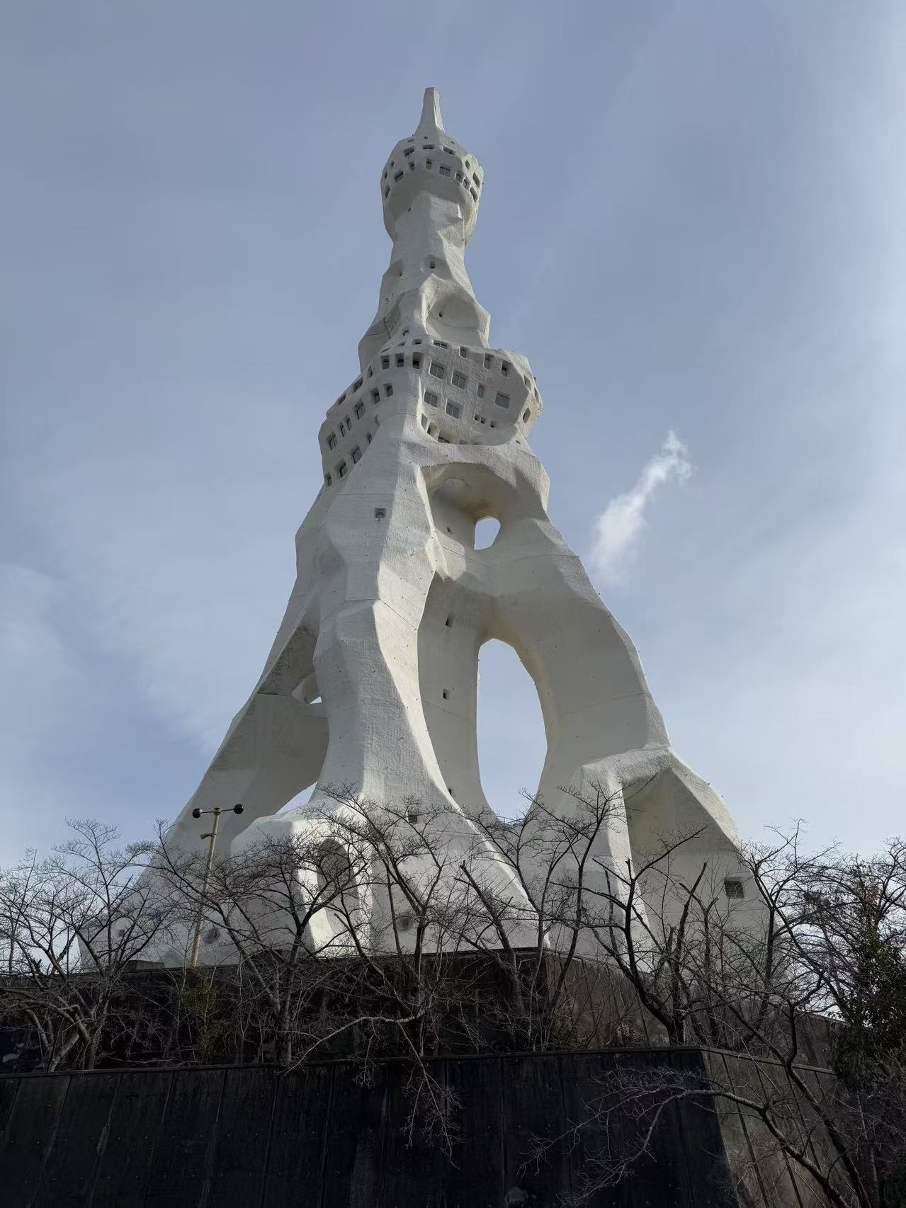 The scale of it was astounding. Never had I seen anything so unique and so large in my life, nothing like it. I stood there for a good five minutes just admiring its grandeur. Then came the realization that I was completely alone, and I made up my mind to walk around the tower. It had such a grotesque geometry which looks a different shape from every angle, reminded me distinctively of the props used in the Japanese Tokusatsu (特撮) films such as the towers in Godzilla or Ultraman. Windows of different sizes were carved into the tower, especially at the middle and top parts of the tower, which shaped like the knots of the elder wand.