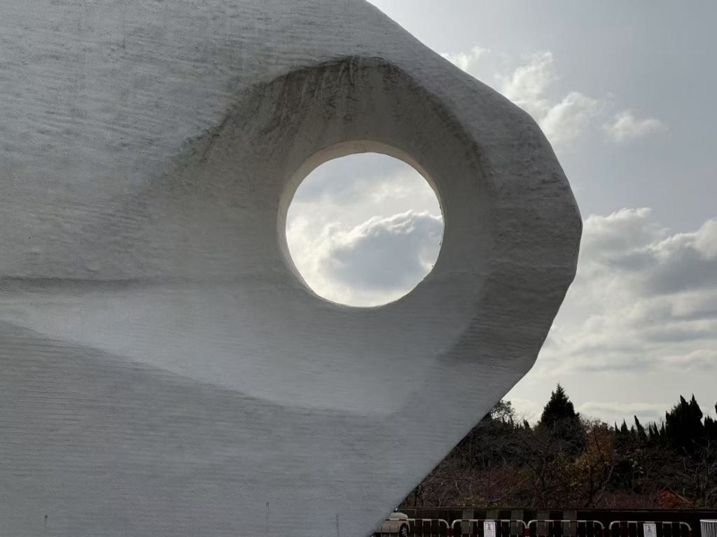 Some sculptures of different genres were scatter around the hall, with a few clay replicas and early ideation of the tower in one corner. They were made by Tokuchika Miki, the man introduced. Whenever after he brings me to a new grotesque statue and introduces the history of it and how its made, I would then pretend to be appreciating it for a minute or two. But really I was just soaking in the atmosphere more than anything. It stroke me that the whole exprience on the PL grounds were not very different from an art exhibition, just one that is too large, too empty, and too in the middle of nowhere.