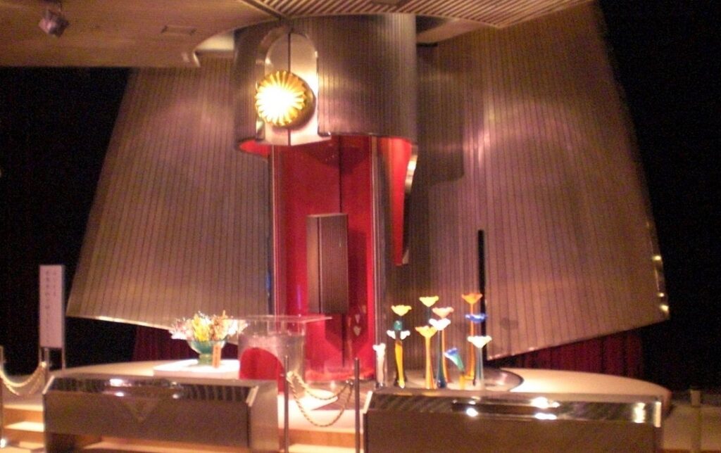 The PL tower was open to public. It opened six days a week from 10:00 A.M. to 4 P.M., and I arrived that day at about 10:15 A.M. The exterior of the tower was designed by PL Kyodan’s second leader Tokuchika Miki, eldest son of Tokuharu Miki, the founder of the predecessor of PL Kyodan.